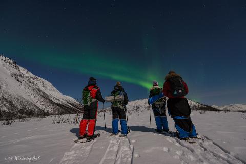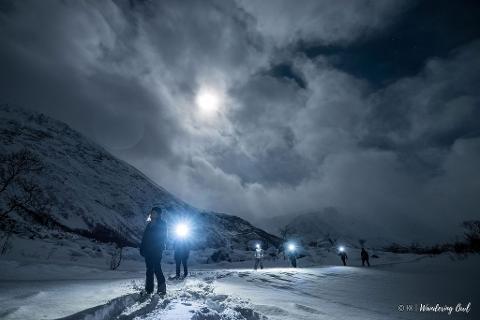 Leave the beaten tracks behind and immerse yourself in the long polar night. If the sky is clear and if the stars are out you may even see the Northern Lights! Listen to the silence and feel what the Arctic winter and polar night is all about. This winter activity gives adventurous travellers the chance to experience snow shoeing or hiking under a billion stars, the moon and may be even the Northern Lights! The most intimate beauty is revealed to the most adventurous night owls. This night time activity includes a warm home-made meal, thermal suits and boots and snowshoes. Your guide will take photos of your activity and share them with you after the tour in web-sized resolution. After enjoying a homemade hot chocolate we'll take you back to your hotel on Tromso island.